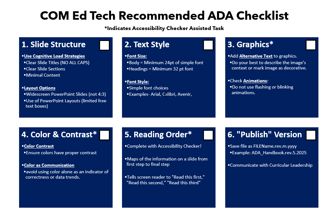Faculty Support: ADA PowerPoint Checklists - Knowledgebase / ADA Digital Accessibility Support - FAU College of Medicine Support Center