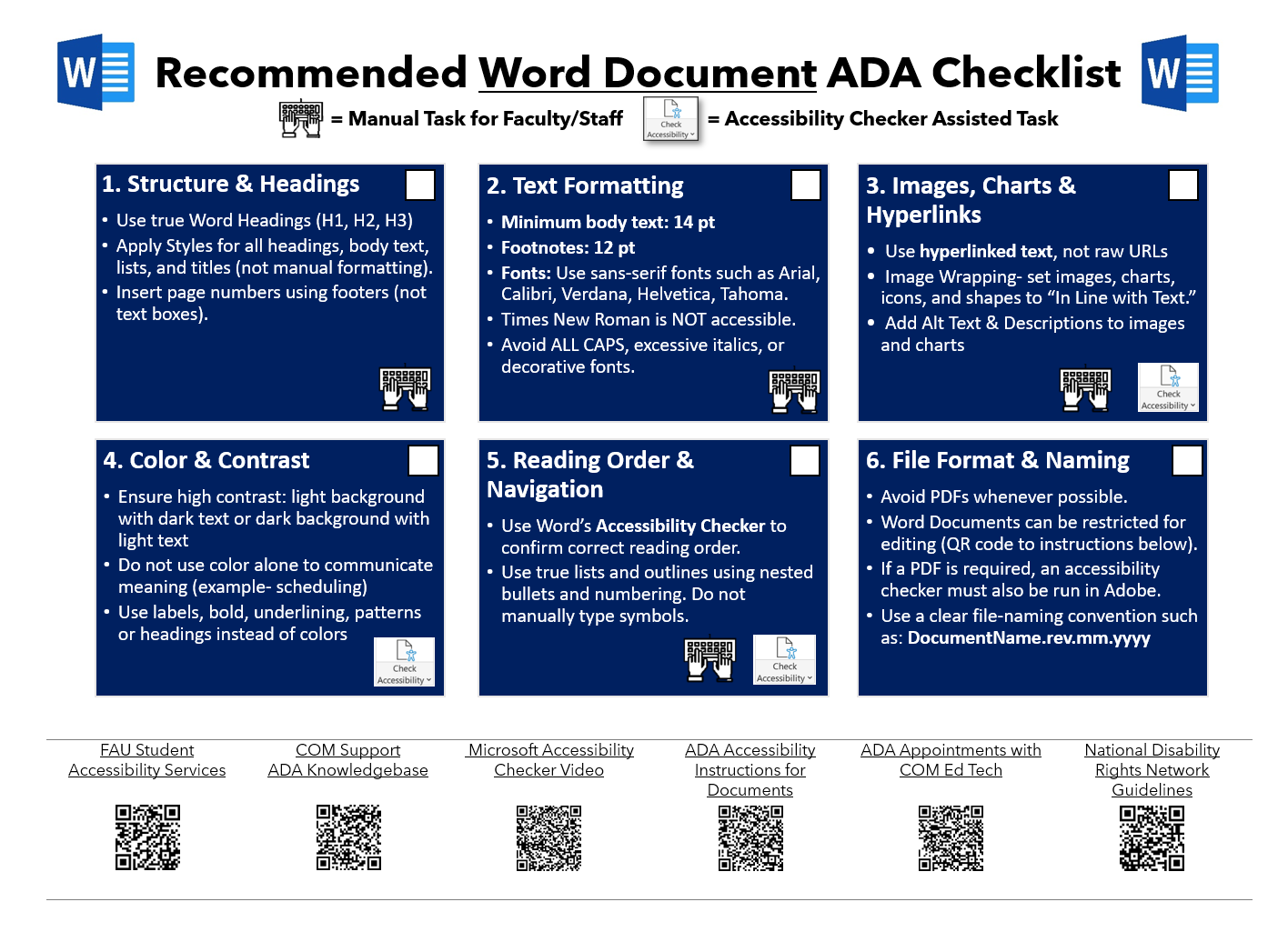 Faculty/Staff Support: ADA Word & PowerPoint Checklists - Knowledgebase / ADA Digital Accessibility Support - FAU College of Medicine Support Center