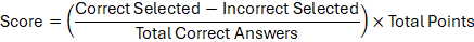 - Selecting incorrect answers can cancel out points earned from correct ones.