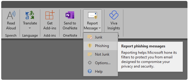 If you’re using Outlook on the web, please right click on the email and select Report, then select Report Phishing.