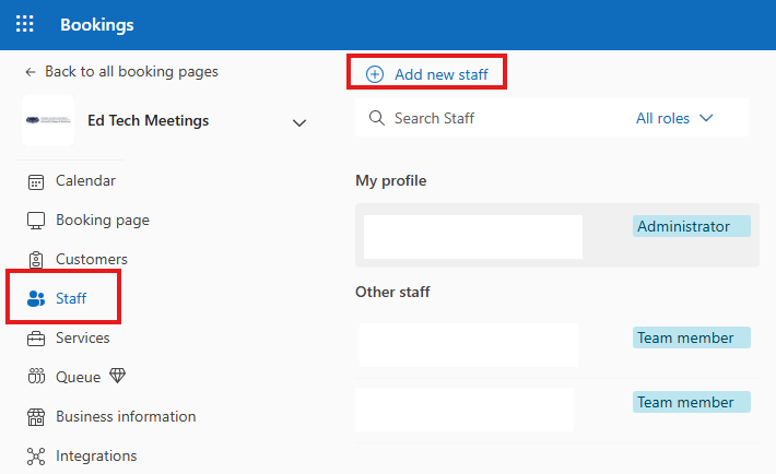 Microsoft Bookings: Add staff to Bookings