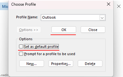 Outlook will open and download emails. It may take a while if you have a lot of email. Any customizations will be reset to the defaults, including signatures and rules.