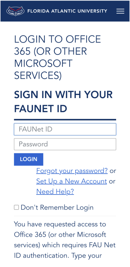 Enter your NetID followed by @fau.edu. Example: testaccount22@fau.edu, testaccount23@health.fau.edu for users with HIPAA email accounts